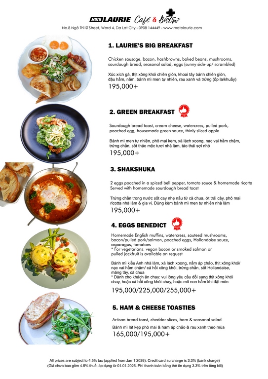 Moto Laurie Coffee & Bistro, Dalat restaurant, breakfast & brunch, European restaurants, vegan, breakfast, Dalat bakery, good food in Dalat, nice restaurant Dalat, cozy, atmosphere, best eggs coffee Dalat, Dalat breakfast, review Dalat, TripAdvisor, gantrungtam, pancakes, smashed avocado toast, toasties, benedict, eggs benedct, bagels, baco, smoked samon, english breakfast