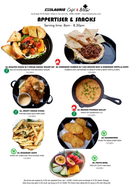 Snack, snacks, snacktime, French fries, baked cheese potatoes, mashed potatoes, crunchy hashbrown, rich, delicious, easytoeat, tasty, groupsoffamilies, friends, children, westernrestaurant, homemade, fresh, local, dalat, crazy house, nearcrazyhouse, goodtime, chatting, happyhour, teaandcoffee, review, dalat, appertizer, roasted veggies, dipping, hummus, rings, french fries, chips, good time